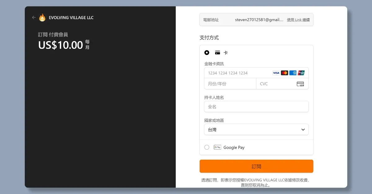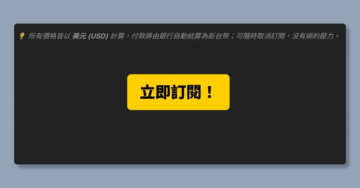 步驟 5:正確填入金融卡或信用卡資訊,點擊「訂閱」即完成!